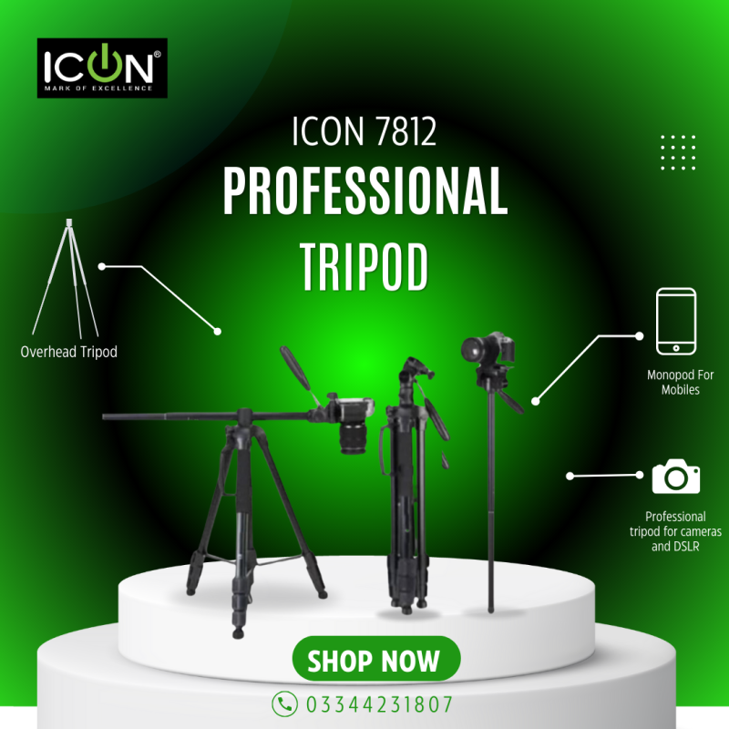 ICON 7812 Professional Overhead Tripod Plus Monopod Multipurpose For Mobiles, Mirrorless Cameras, DSLR etc