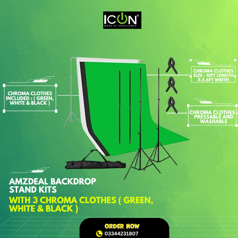 Backdrop Stand Kits with 3 Chroma Clothes (Green, White & Black)