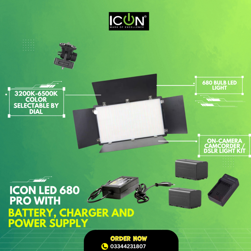 ICON LED 680 Pro with Dual Battery Charger & Adapter 40W Bi-Colour Led Panel Photography Light