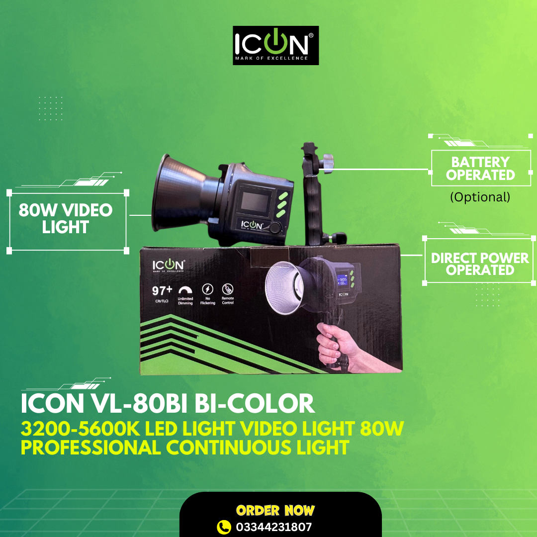 ICON VL-80 Bi-Color 3200-5600K LED Light Video Light 80W Professional Continues light For Photography and Videography