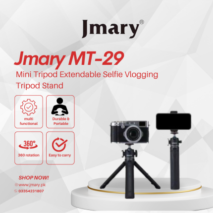 Jmary MT-29 Mini Tripod Extendable Selfie Vlogging Tripod Stand ₨ 3,000 Original price was: ₨ 3,000.₨ 2,500Current price is: ₨ 2,500.